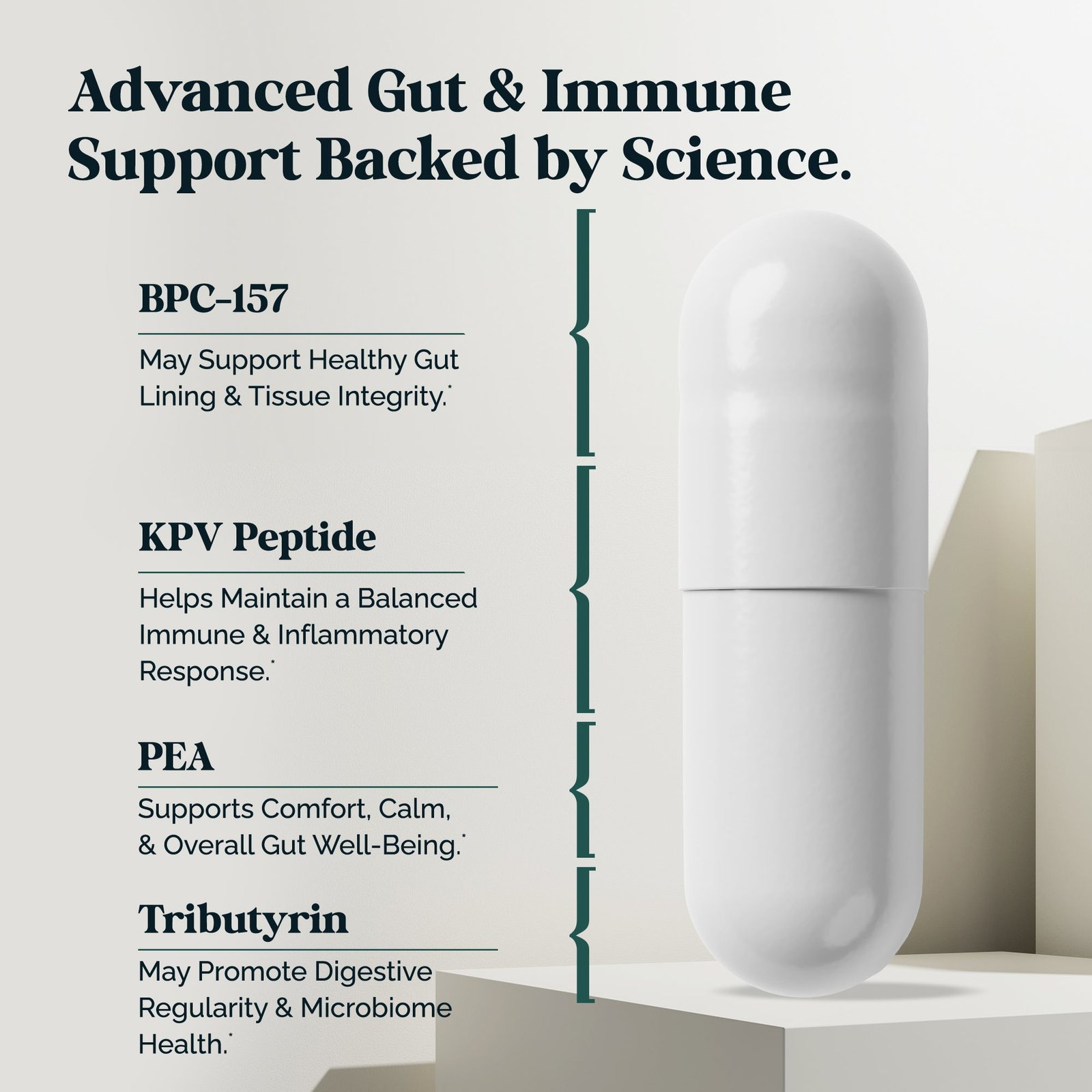 BPC-157 KPV PEA Tributyrin Peptide Blend (GI Repair | 60 Capsules)
